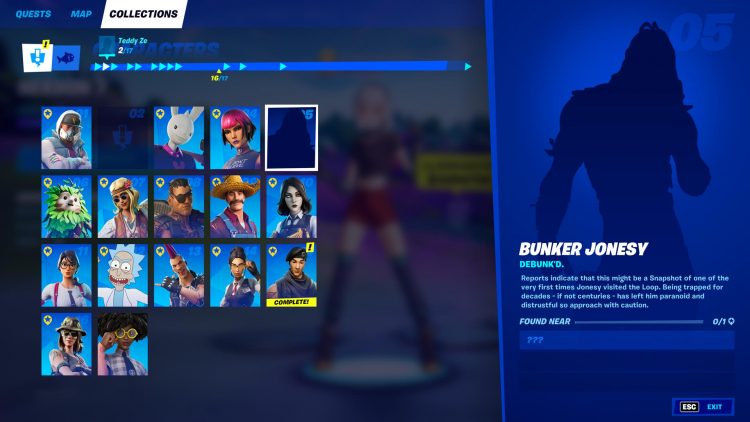 Bunker Jonesy is the perfect character for Fortnite Season 7 and its alien invasion theme Bunker Jonesy is an iconic Fortnite character who has appeared as an NPC in the last three seasons of Epic Games' popular Battle Royale He is known to be a conspiracy theorist, even keeping a special Conspiracy Board during Season 7In Season 5 and Season 6 of Fortnite, Bunker Jonesy All NPC Locations Bunker Jonesy is #6 in the list of 46 NPCs in Fortnite Chapter 2 Season 6, and can be found inside of a cabin in a remote area south of the snowy mountains near Misty Meadows Note that Bunker Jonesy won't be at this cabin each and every single time you drop into the Fortnite map Instead, the spawns appear to be randomLocations in Fortnite Chapter 2 Season 8 0000 NPC